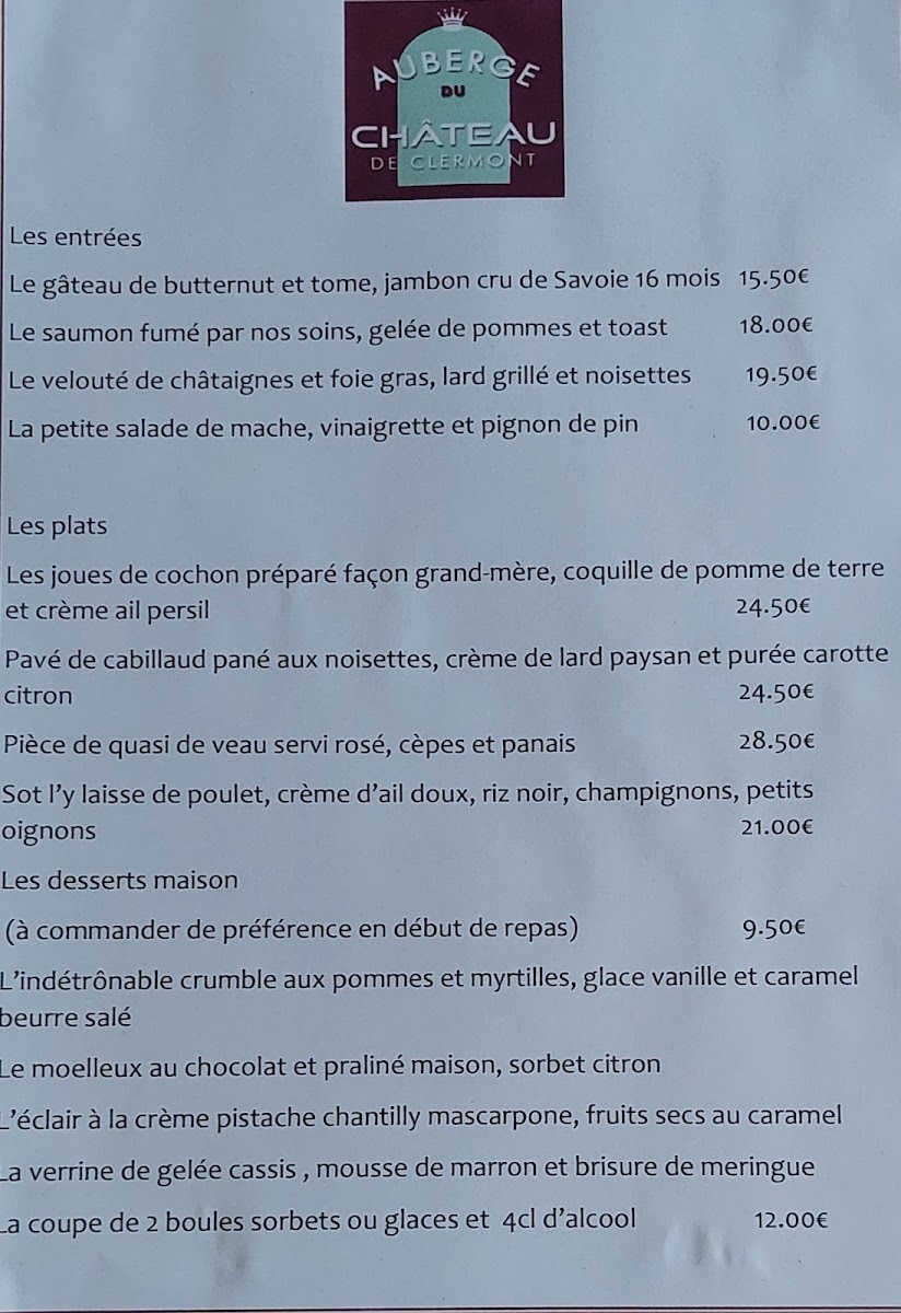 Introducing the Menu at Auberge du Chateau de Clermont